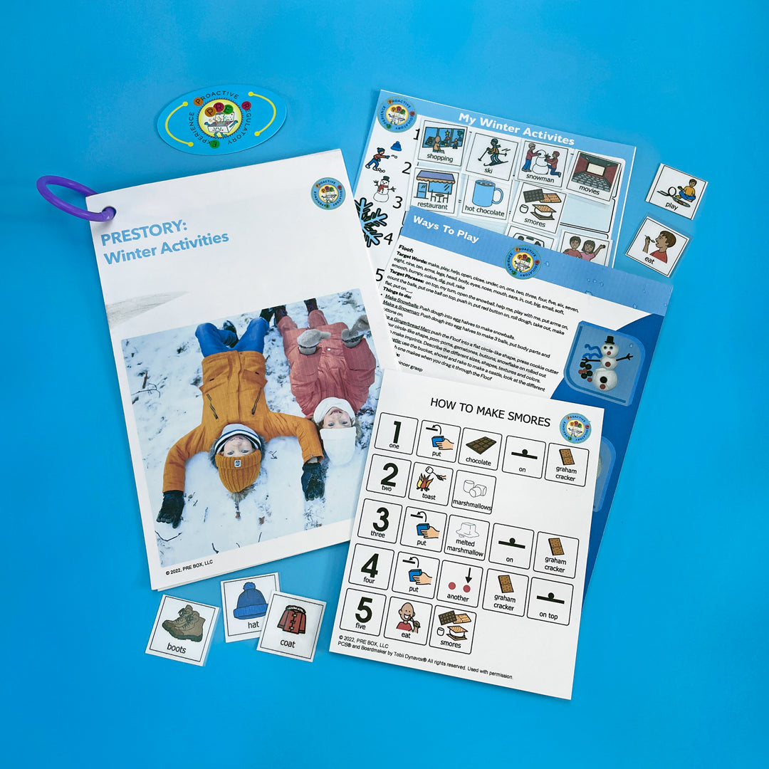 The Winter Wonderland Sensory Box includes a bucket and shovel, instant snow, DIY snow globe, Floof, cookie cutter, snowman parts, mittens, and more! You will receive our Winter PRE Story, visual supports, and a Ways to Play parent handout. This box has everything you need to prepare for the snow and make winter a fun sensory experience year-round!